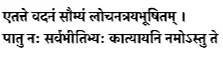 pātu naḥ sarvabhītibhyaḥ kātyāyani namo:'stu te ||